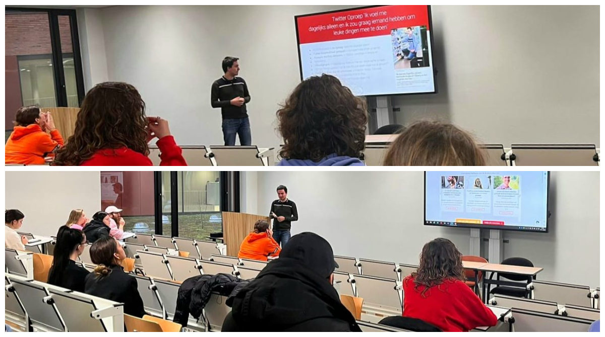 ‘In totaal waren er 24 studenten aanwezig die de opleiding MBO Sociaal Werk volgen. De studenten luisterden aandachtig naar mijn verhaal en stelden veel vragen. Daarnaast vertelde ik over hoe zij zelf kunnen bijdragen door bijvoorbeeld mee te doen of andere mensen te doorverwijzen die zich alleen voelen.