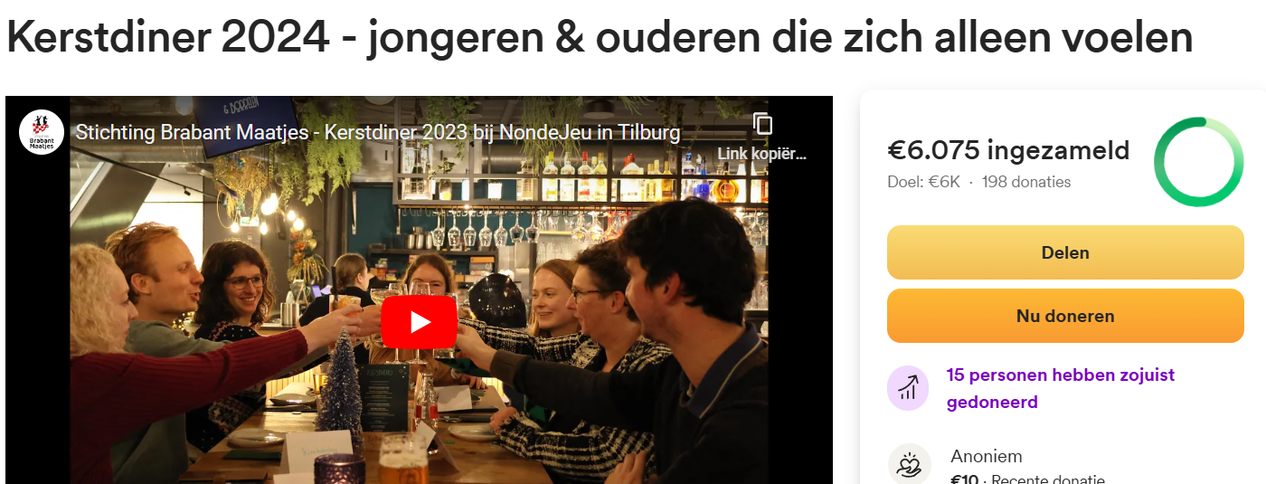 Op dinsdag 24 december 2024 vond ons jaarlijkse Kerstdiner plaats in Tilburg, georganiseerd door Stichting Brabant Maatjes en Stichting 2Gether. Dit evenement is volledig opgezet door deze twee stichtingen en mede mogelijk gemaakt dankzij een succesvolle crowdfundingcampagne.
