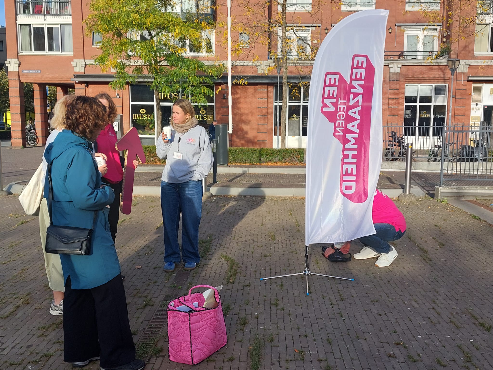 Vanaf station Den Bosch vertrokken deelnemers onder begeleiding van Brabant Maatjes richting het congrescentrum. Als één van de drie geselecteerde initiatieven mocht onze stichting deze symbolische wandeling leiden. Onder onze magenta beachvlag ontstonden al snel gesprekken, lachmomenten en nieuwe verbindingen.