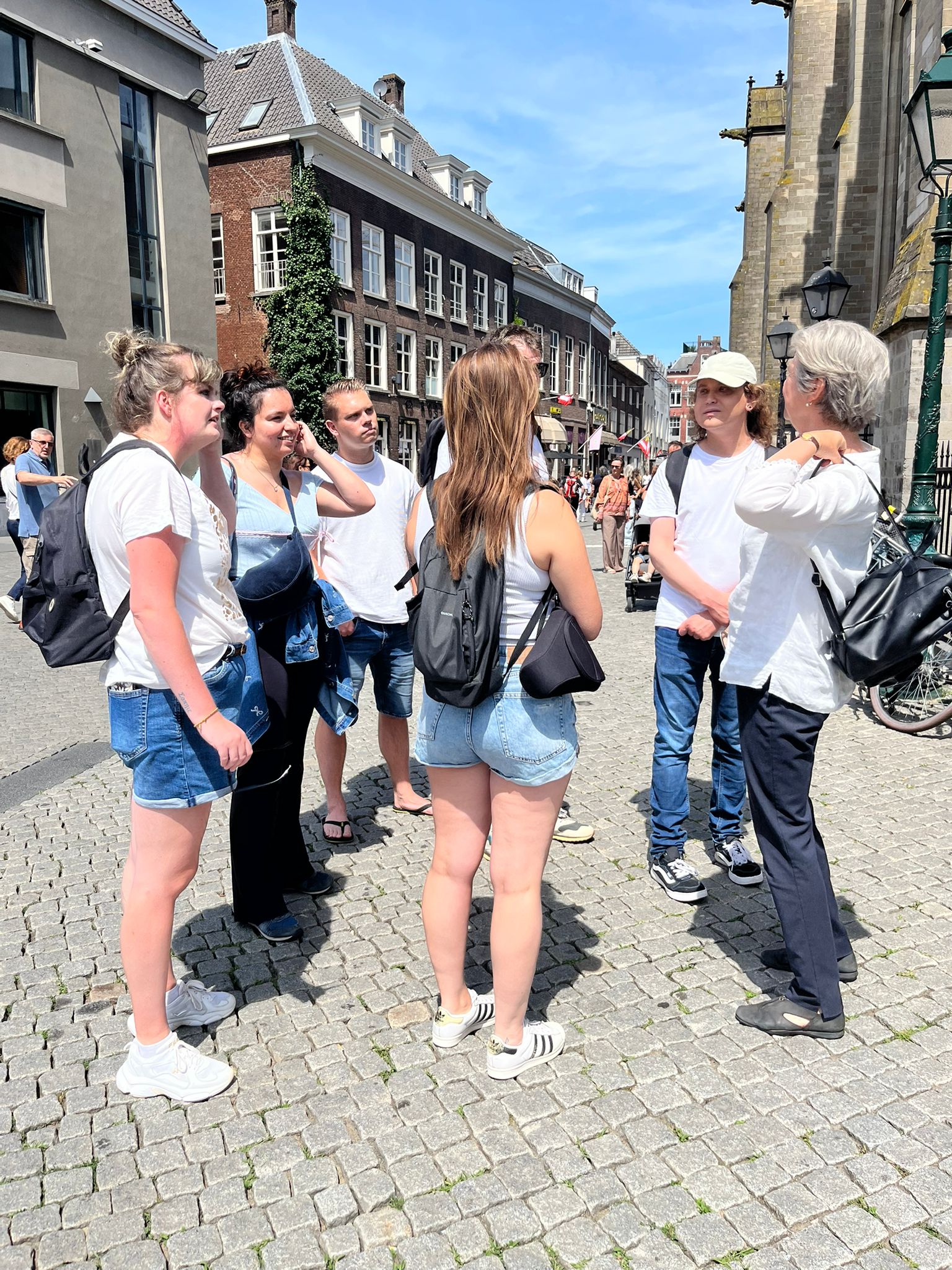 Het was heerlijk weer. Stipt om 13:30 uur kon de groep starten bij de ingang van de Sint‑Janskathedraal. Danielle: