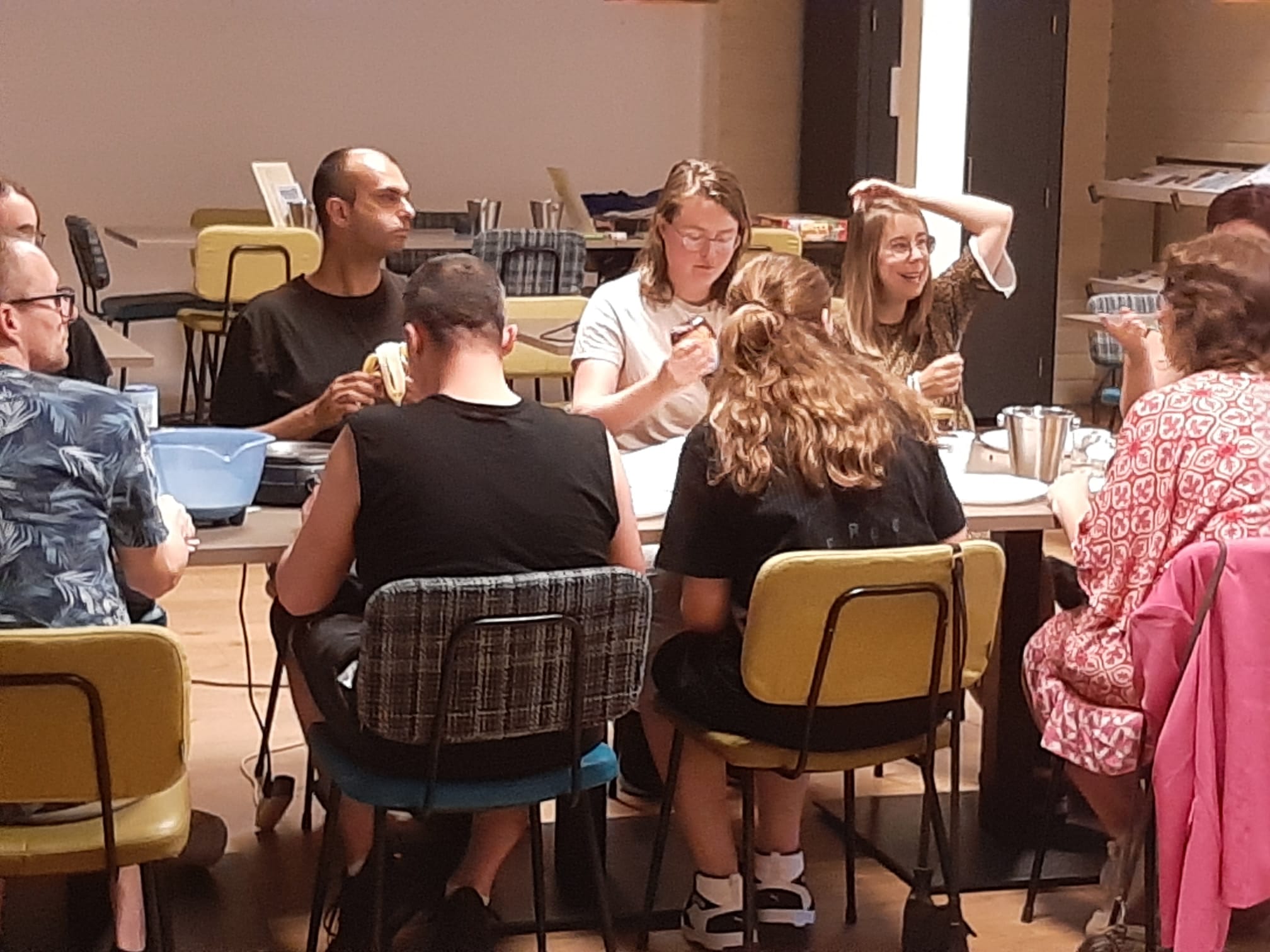 De middag begon met een hartelijk welkom. Al snel pakte iedereen penseel of potlood om iets moois te maken. We schilderden, deelden ideeën, en lachten samen. Ondertussen genoten we van versgebakken pannenkoeken – een simpele, maar verbindende maaltijd. Alle materialen lagen klaar, begeleiders van Brabant Maatjes zorgden voor een ontspannen sfeer.